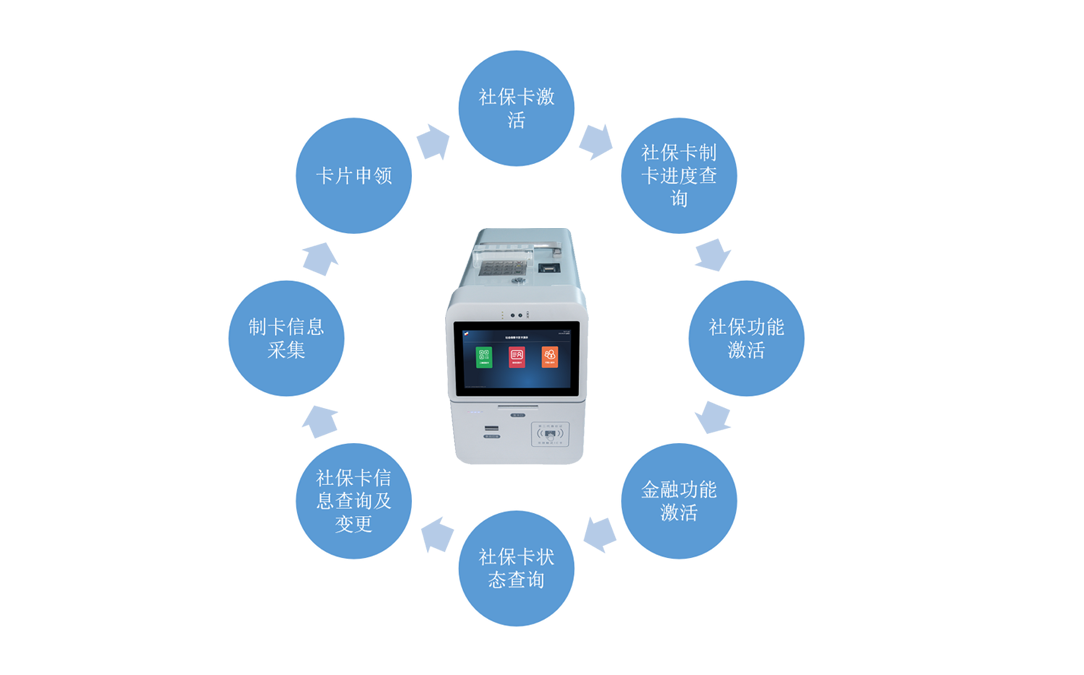 银点S260便携式发卡一体机配备的操作系统,功能包括制卡信息采集、卡片申领,社保卡激活,社保卡制卡进度查询,社保功能激活,金融功能激活,社保卡状态查询,社保卡信息查询及变更,社保卡服务网点查询,社保卡人社业务密码修改,社保卡业务政策查询,人社相关业务查询、社保卡预约业务申请、查询,社保卡自助发放、社保卡即时自助制发卡、社会保障卡自助发放、发卡记录查询等。